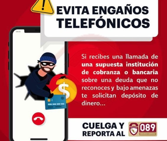 Huejutla, Hgo.- La Secretaría de Seguridad Pública del Estado, alerta a la población sobre engaños telefónicos, por lo que exhortan a no caer en las mentiras de los delincuentes. Si alguna persona recibe una llamada de una supuesta institución de cobranza o bancaria, sobre una deuda que no reconoce y bajo amenazas le solicitan depósito… Seguir leyendo Alertan sobre engaños vía telefónica