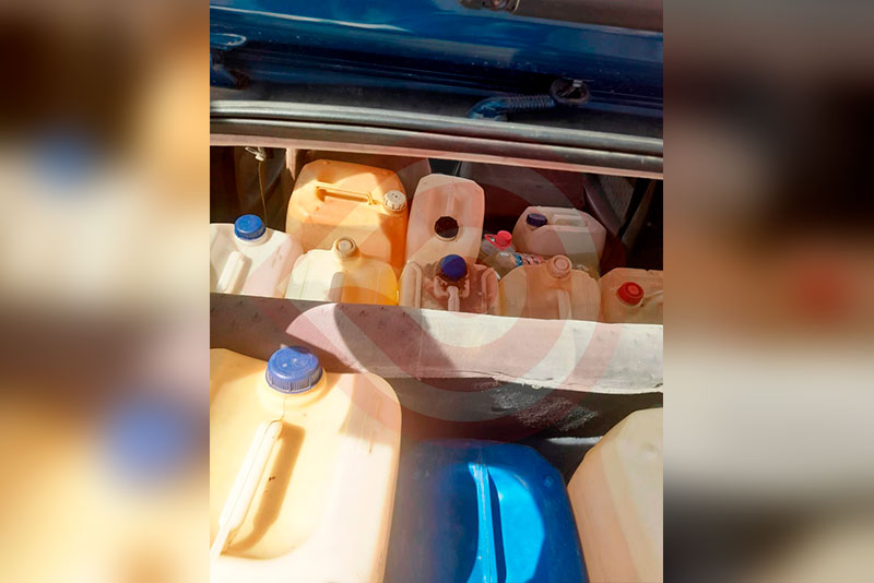 Dentro del vehículo se localizaron, sin acreditar la procedencia legal, más de 350 litros de gasolina en contenedores, por lo que el chofer, de nombre F.Y.C., de 43 años, fue detenido y consignado ante el Ministerio Público Federal.
