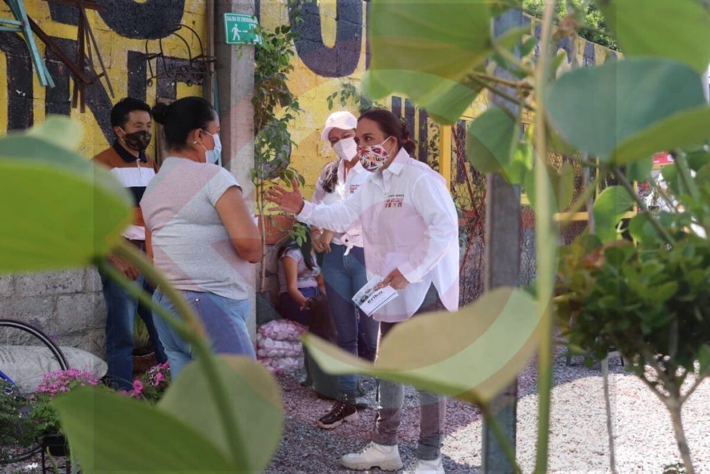 Actopan, Hgo., a 09 de abril de 2021.- El reclamo y la indignación contra las disposiciones federales que achicaron o eliminaron los programas sociales son recurrentes. Erika Rodríguez Hernández, candidata a diputada local de la coalición Va por Hidalgo caminó las calles de Actopan, tocó puertas, escuchó demandas de vecinos y comerciantes y, por supuesto, expuso algunas de sus propuestas para llevar al Congreso del estado.