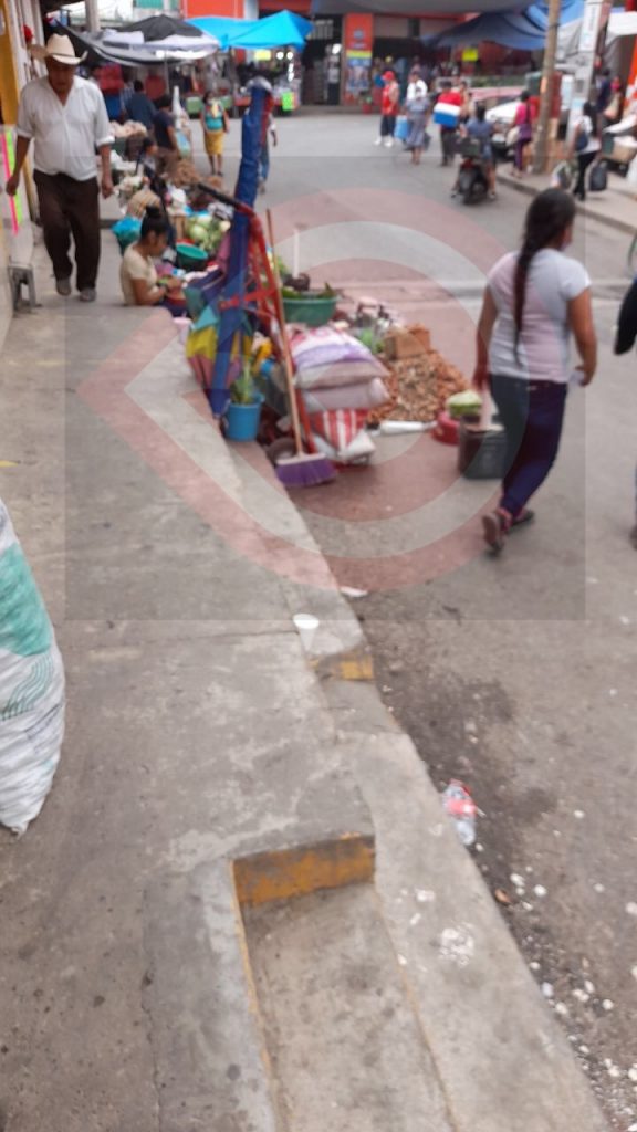 La invasión de las banquetas de las principales arterias que conducen al mercado es frecuente en la ciudad, y hasta el momento las autoridades competentes no han hecho nada por solucionar el problema que pone en riesgo a los ciudadanos que tienen la necesidad de caminar, y en muchos de los casos lo hacen por el arroyo de las calles ante el eminente peligro que puedan ser arrollados por algún vehículo.