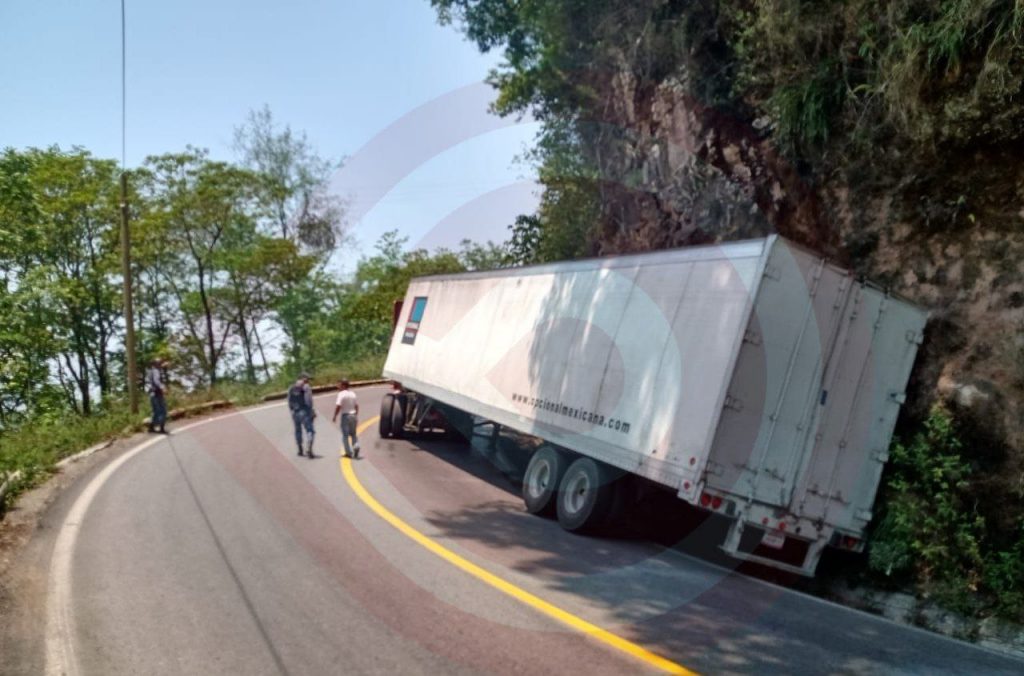 Posteriormente, un camión tipo tráiler, sufrió una salida de camino, el cual quedo sobre la cuneta de la carretera federal México-Tampico, a la altura del lugar conocido como Casetas Tlanchinol.