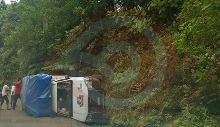 Volcó camioneta sobre cinta asfáltica