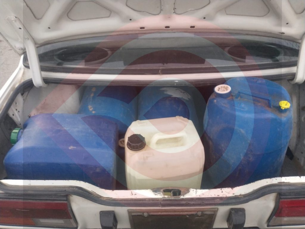 En labores de vigilancia y patrullaje en la comunidad de Hueyapita, Cuautepec, oficiales estatales intervinieron a un individuo que transportaba contenedores con hidrocarburo en un vehículo Nissan Tsuru, color blanco, placas del Estado de México.
