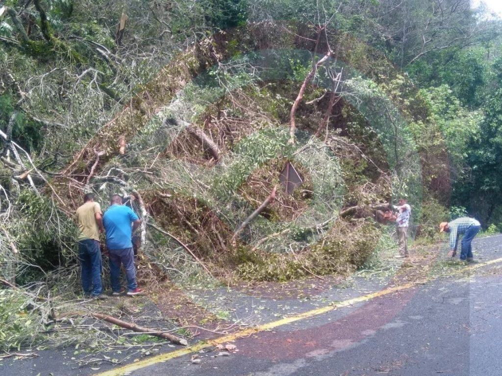 Asimismo, algunos árboles de considerable tamaño que cayeron sobre la carpeta asfáltica, igualmente fueron seccionados con motosierras y removidos de la vía terrestre, para garantizar un tránsito fluido y sin riesgo para los usuarios en ambas direcciones ya que era obligada la invasión de carril con amplia posibilidad de una colisión.