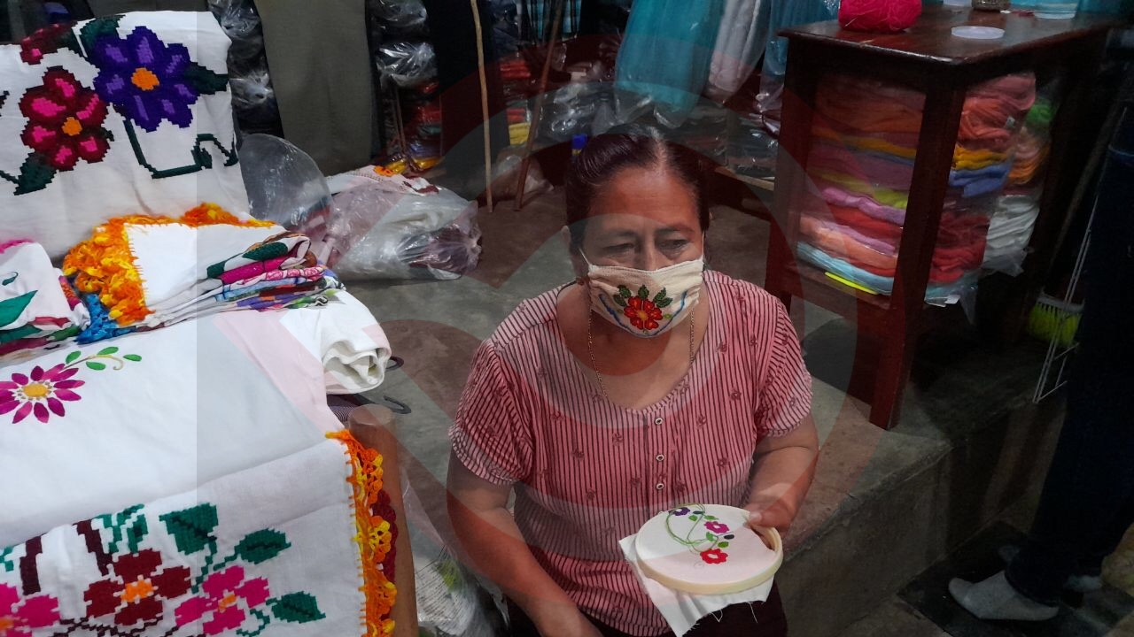 Agregó que la artesanía, en su origen, es utilitaria, se ocupa para afrontar la necesidad de vestir, hogar y sustento, por lo que borda blusas, servilletas y manteles, y últimamente desde que inició la pandemia del COVID-19, cubre bocas.