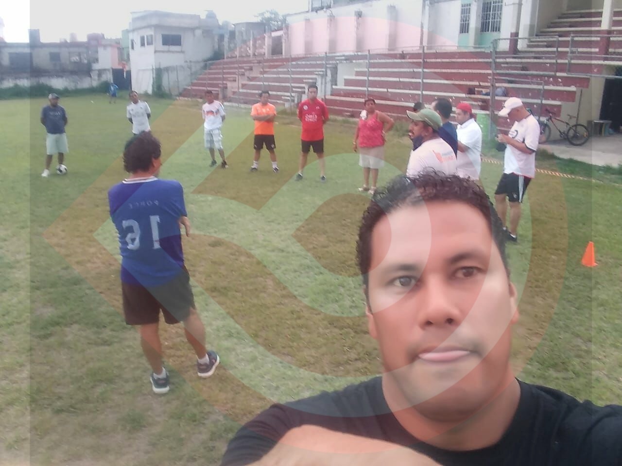 Integrantes de la selección varonil de fútbol de la Liga Municipal de Fútbol de Veteranos (LMFV), entrenan de cara a su compromiso amistoso contra el selectivo de la Liga Municipal de Fútbol de la categoría Libre (LMFL) Foto: José Luis Romero/Zunoticia.