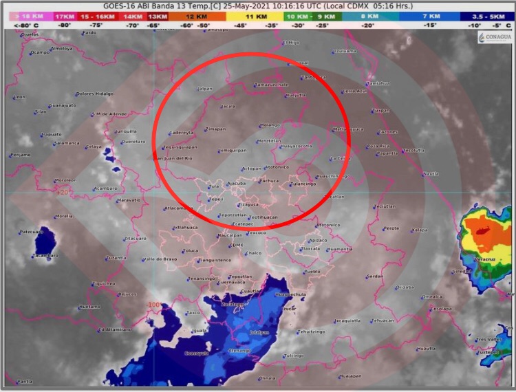 Para el Valle de México se prevé cielo medio nublado y ambiente fresco por la mañana, incremento de nubosidad con ambiente de cálido a caluroso hacia la tarde y viento del norte de 10 a 20 km/h, con rachas de 30 a 40 km/h. En la Ciudad de México se esperan lluvias aisladas con descargas eléctricas, temperatura mínima de 14 a 16 grados Celsius y máxima de 27 a 29 grados Celsius. Para el Estado de México se prevén intervalos de chubascos con descargas eléctricas, así como temperatura máxima de 25 a 27 grados Celsius y mínima de 6 a 8 grados Celsius en Toluca.