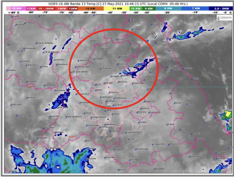 En el Valle de México se prevé cielo parcialmente nublado por la mañana, incremento de nublados hacia la tarde, probabilidad de chubascos dispersos en zonas del Estado de México, que podrían acompañarse de descargas eléctricas y posibles granizadas, así como lluvias aisladas en la Ciudad de México y viento del noreste de 10 a 20 km/h con rachas de 40 km/h. En la Ciudad de México se pronostica temperatura mínima de 13 a 15 grados Celsius y máxima de 28 a 30 grados Celsius, y en Toluca, Estado de México, mínima de 7 a 9 grados Celsius y máxima de 26 a 28 grados Celsius.
