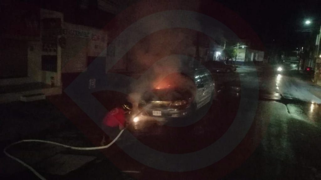Huejutla, Hgo.- Durante las primeras horas de este miércoles, un vehículo que circulaba en la calle Yucatán de la colonia 5 de Mayo de esta ciudad, se incendió y en cuestión de minutos quedó envuelto en llamas, sin embargo gracias a la rápida intervención de los bomberos, el fuego fue apagado.