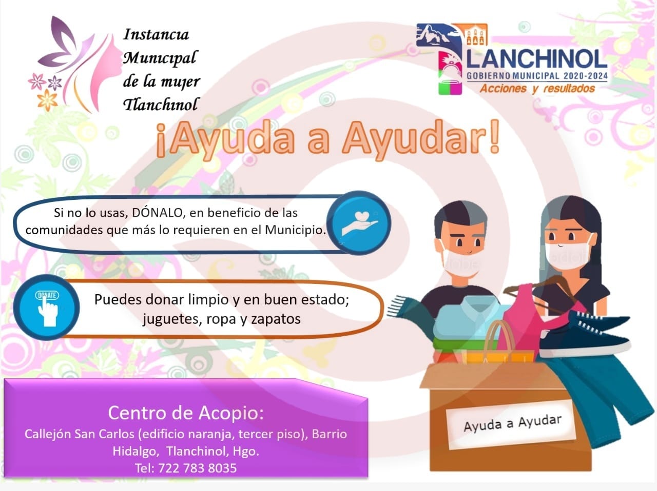 Tlanchinol, Hgo. – Mediante el área de Instancia Municipal de la Mujer, invitan a participar en la campaña ¡Ayuda a Ayudar!, con el fin de hacer partícipe a la ciudadanía como un acto fundamental para construir herramientas que apoyen el bienestar común. ¡Ayuda a Ayudar!, consiste en la recolección de juguetes, ropa y zapatos limpios… Seguir leyendo Impulsan campaña en favor de los que menos tienen