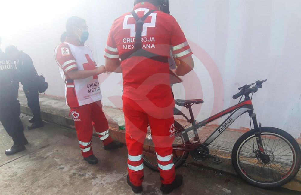 Huejutla, Hgo.- Una persona del sexo femenino, que circulaba a bordo de su bicicleta, fue auxiliada por paramédicos de cruz roja luego de haber sido atacada por un feroz canino.
