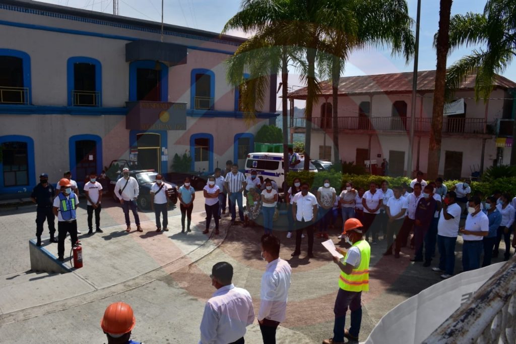 - Empleados y visitantes del palacio municipal participaron activamente en el simulacro efectuado como parte del evento convocado a nivel nacional
