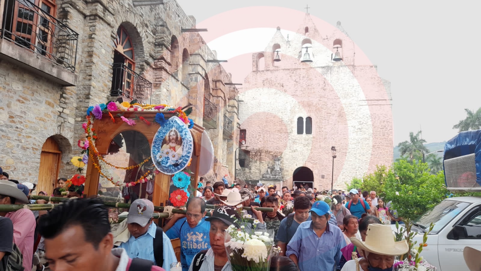 Huejutla, Hidalgo.- Previo a la celebración del Día de San Juan Bautista, habitantes de una comunidad de Huejutla de Reyes participaron la mañana del miércoles en una Procesión con el Padre Jesús.
