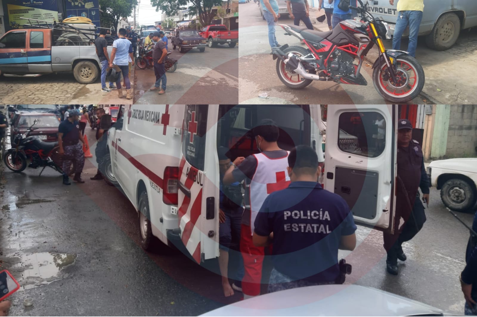 Huejutla, Hgo. – Una persona del sexo masculino que viajaba en su motocicleta junto a su acompañante terminaron impactados contra una camioneta particular, por lo que cruz roja acudió para auxiliar.