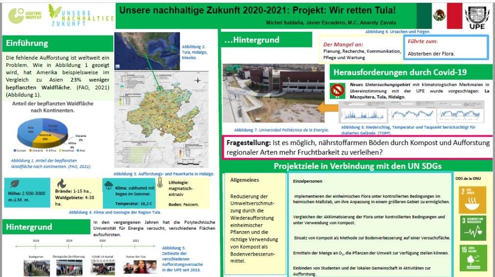 Cabe señalar que Michel Saldaña Salas y Javier Mercado Escudero, para lograr el trabajo recibieron asesoramiento técnico y del idioma alemán. Además, con la participación de la comunidad universitaria de esta casa de estudios, lanzaron la iniciativa Green Challenge, con el propósito de motivar a reforestar desde casa.