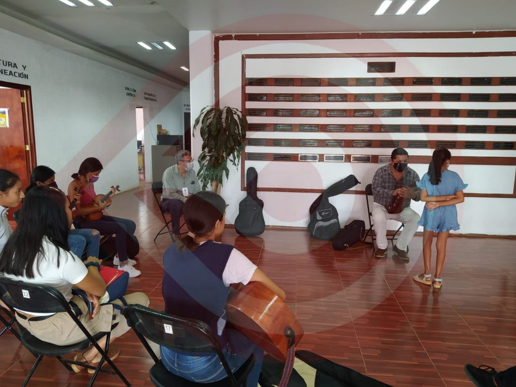 Dicho curso-taller, denominado “Fortalecimiento de la Música Huasteca”, se lleva a cabo los días domingos y lunes de 4:00 a 6:00 de la tarde, en la sala de los presidentes del Palacio municipal.