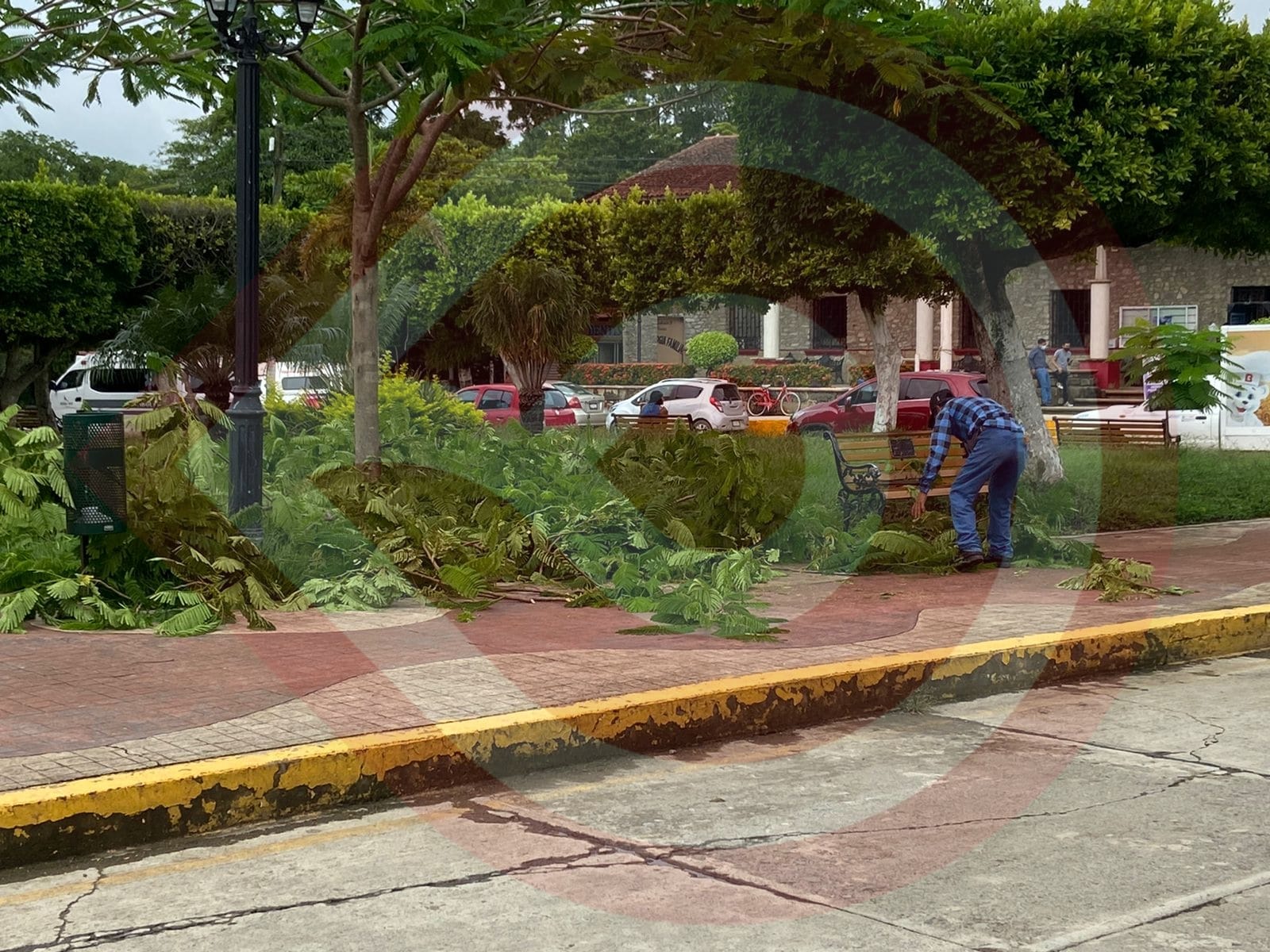 Los trabajadores comenzaron desde temprana hora con las labores de chapoleo y posteriormente al recorte de los árboles que están en mal estado.