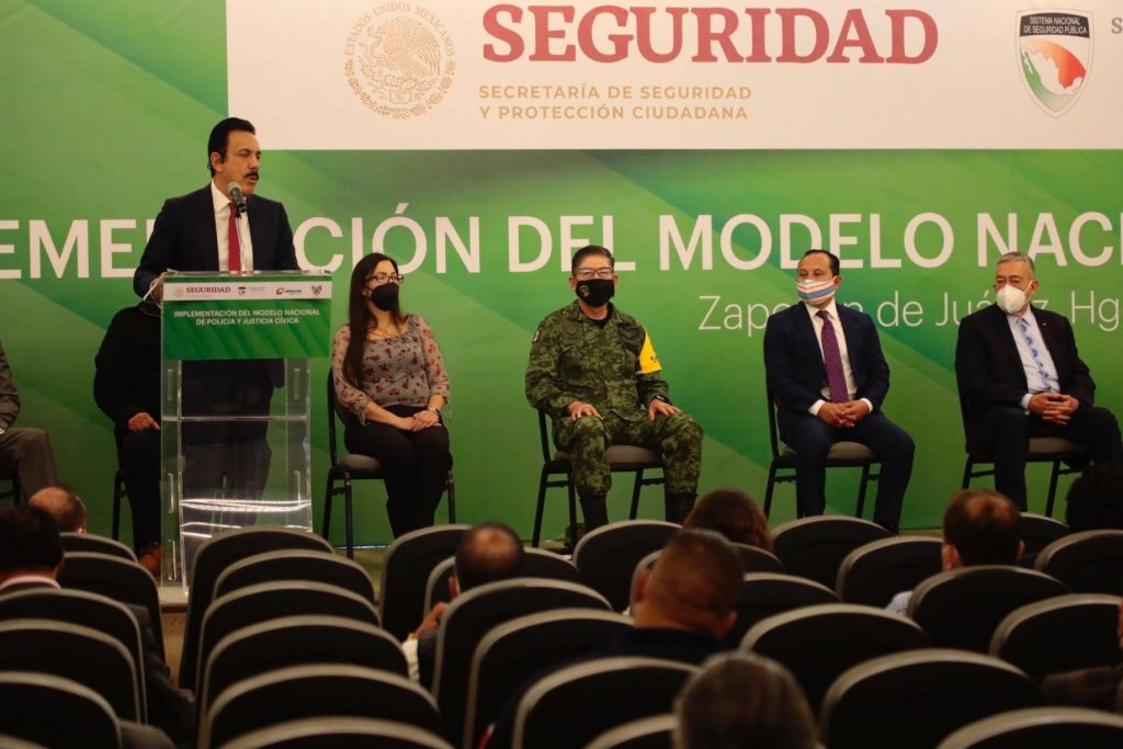 Zapotlán de Juárez, Hgo.- En cumplimiento al acuerdo que el gobierno de Hidalgo contrajo con el Consejo Nacional de Seguridad Pública en julio de 2019, el gobernador Omar Fayad inició la implementación del Modelo Nacional de Policía y Justicia Cívica, acompañado por el titular del Secretariado Ejecutivo del Sistema Nacional de Seguridad Pública, Leonel Cota Montaño, en el Centro de Control, Comando, Comunicaciones, Cómputo, Coordinación e Inteligencia (C5i).