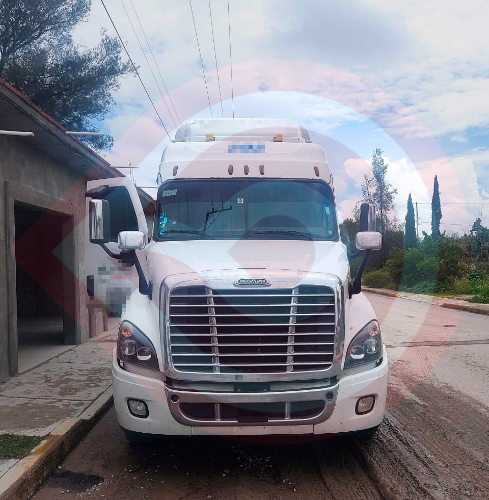 En la comunidad de Cañada, municipio de Atotonilco de Tula, otro tractocamión relacionado con reporte de robo fue localizado y puesto a disposición de la Fiscalía General de la República, mediante su representación en Hidalgo.