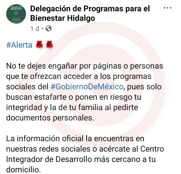Lo anterior luego que a través de redes sociales se invite a la población a unirse a este tipo de programas a través de diversas cuentas, las cuales no son oficiales, lo que hace que este tipo de llamados sean posibles fraudes.