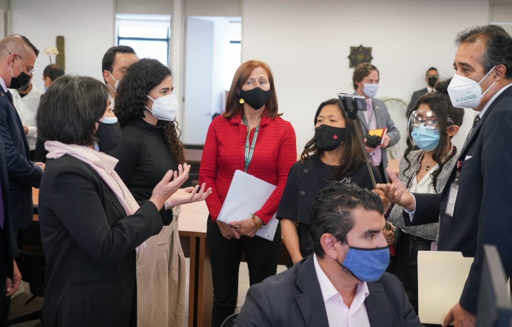 En la reunión estuvieron presentes también la Subsecretaria de Comercio Exterior, Luz María de la Mora, por la Secretaría de Economía; así como Alejandro Encinas Nájera, titular de la Unidad de Política Laboral y Relaciones Institucionales y Esteban Martínez Mejía, titular de la Unidad de Enlace para la Reforma al Sistema de Justicia Laboral, ambos de la STPS.