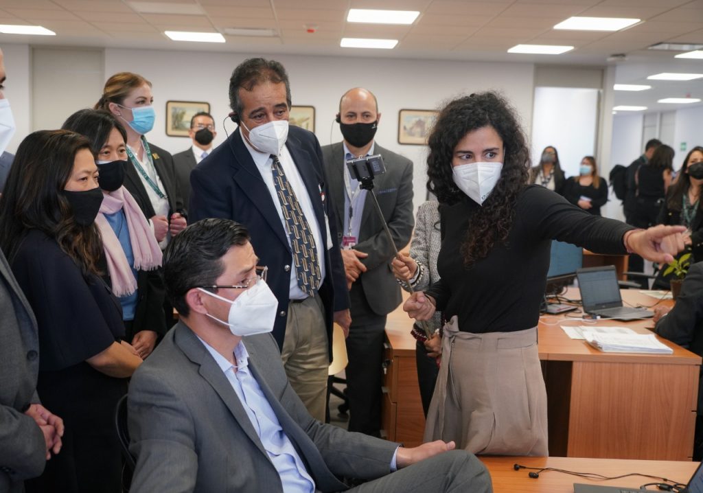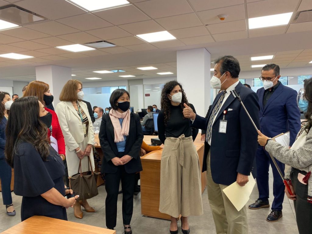En la visita que realizaron las delegaciones de los socios comerciales de México para conocer los diferentes servicios que brinda este organismo público a los trabajadores y empleadores, asistieron también las secretarias del Trabajo y Previsión Social y de Economía, Luisa Alcalde Luján y Tatiana Clouthier, respectivamente.