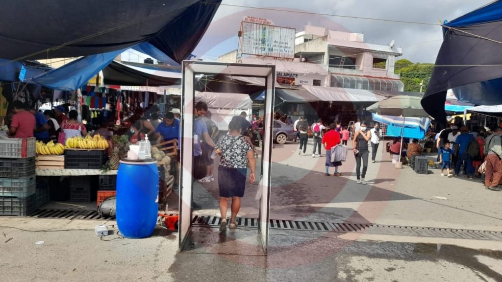 Huejutla, Hgo. – En unos por falta de personal, y en otros por no tener los productos necesarios, como agua para las cabinas y solo se aplicaba gel antibacterial, este domingo no funcionaron a plenitud los filtros sanitizantes tendientes a prevenir contagios del COVID-19, que desde que inició la contingencia sanitaria se instalan en todos los accesos del tianguis y mercado municipal.
