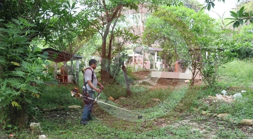 cuadrillas de trabajadores del área municipal ejecutan las acciones correspondientes con el retiro de maleza y mejoramiento de instalaciones y actividades de saneamiento.