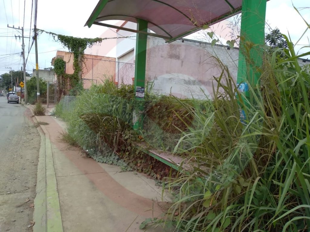 Lo anterior fue denunciado públicamente por quien se identificó con el nombre de María Teresa Cortés, quien manifestó que el parador que se encuentra en la entrada de la colonia Nezahualcóyotl, está cubierto de hierba y por temor de que haya un animal, la gente ya no lo utiliza.
