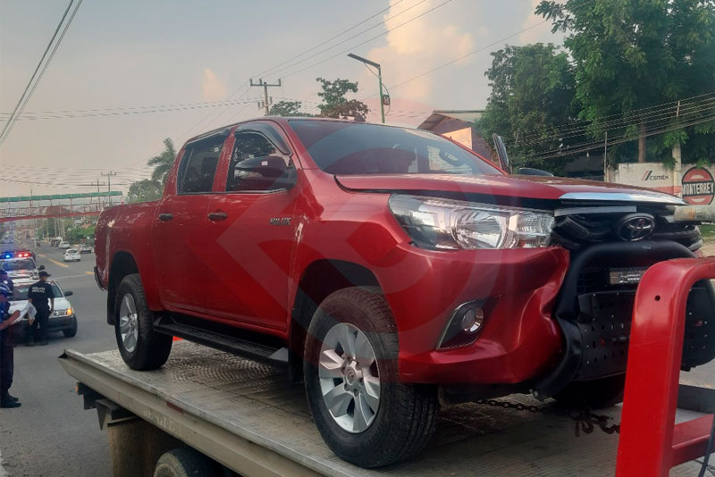 Al arribar al lugar las autoridades se percataron que se trataba de un radio taxi marcado con el número económico 041, el cual al circular presuntamente a exceso de velocidad y sin precaución había sido impactado por alcance por una camioneta Toyota Hilux color guinda, por lo que después de diálogo los vehículos fueron remolcados por una grúa al corralón, donde se espera que los propietarios de ambas unidades lleguen a un acuerdo de reparación.