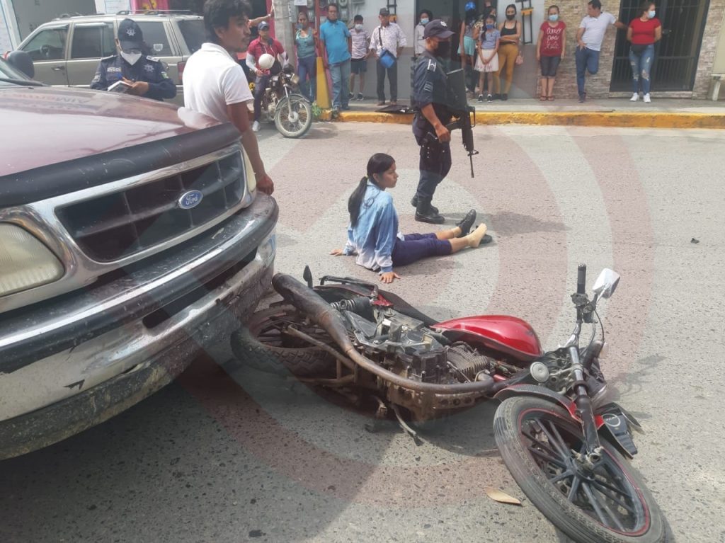 Los hechos ocurrieron la tarde del día sábado alrededor de las 16:00 horas sobre la calle Morelos de la zona centro, cuando una mujer y un hombre quedaron tirados en la cinta asfáltica al ser atropellados en una motocicleta por el conductor de una camioneta particular Ford F-150, el cual circulaba en aparente estado de, así mismo, transportaba madera en la parte trasera de su vehículo.