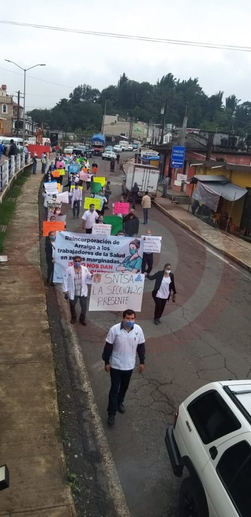 “Desde el inicio de la pandemia hemos estado trabajando a marchas forzadas, sin gozar de permisos, sin vacaciones, trabajando incluso días festivos y en fines de semana, así como también sin equipos de protección como lo que son cubrebocas, guantes, batas, teniendo los compañeros que comprarlas en la medida de sus posibilidades. Incluso participando en la campaña de vacunación a adultos mayores sin que el personal de salud estuviera vacunado” manifestó el Lic. Omar Medina Vite Delegado sindical subsecciones de la sección 2O Región Molango.