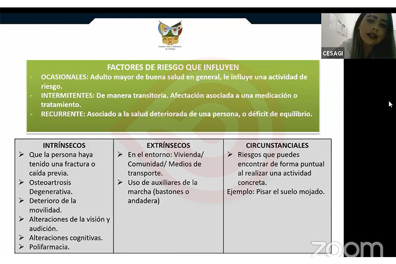 Ante ello, expertos de la Secretaría de Salud de Hidalgo (SSH), expusieron mediante un curso online, las principales acciones de prevención para evitar caídas en este sector de la población, así como su impacto en la salud del adulto y la actuación a emprender en caso de este tipo de accidentes.