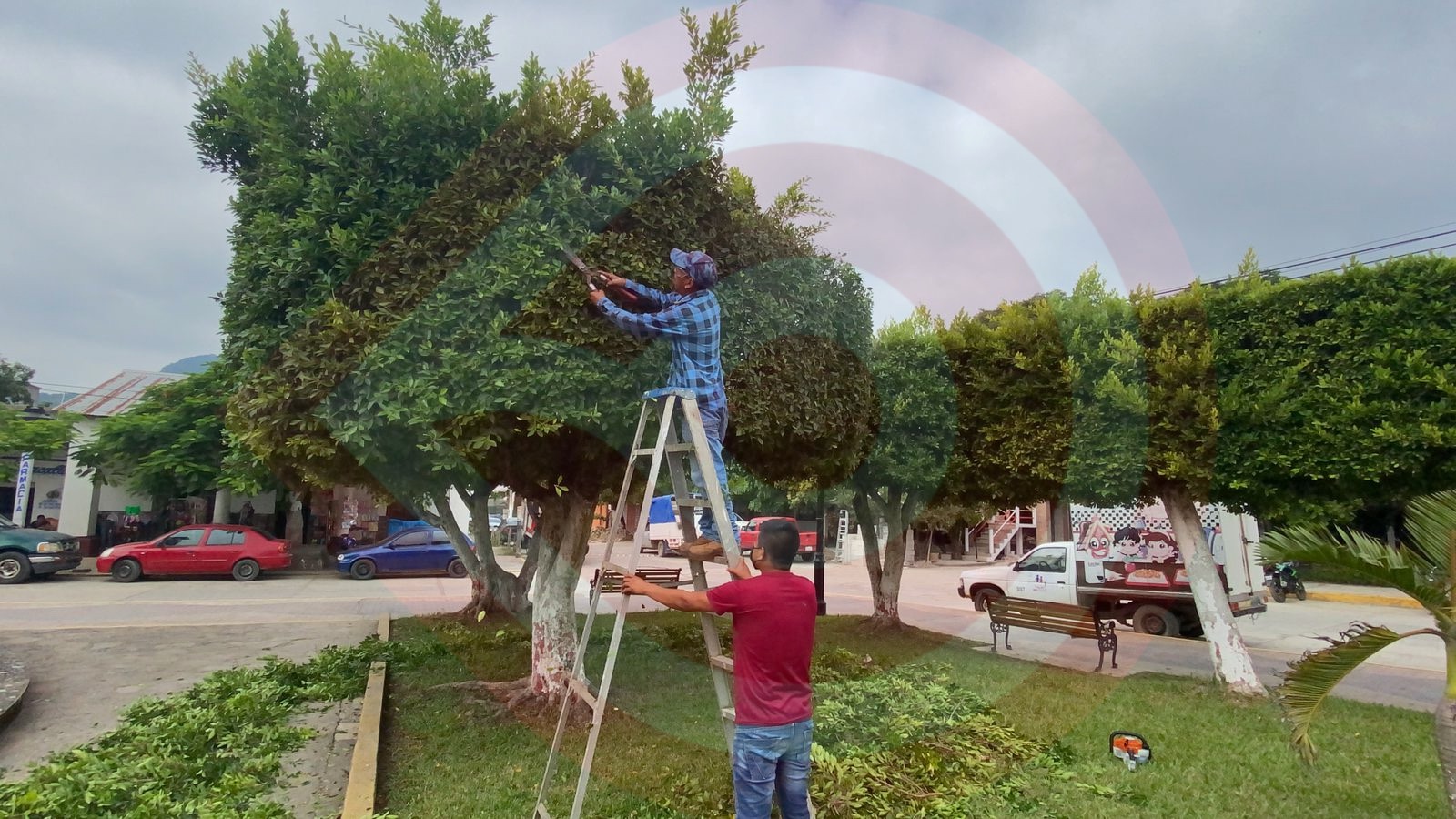 Atlapexco, Hgo.- Personal del ayuntamiento realiza labores de deshierbe y poda de árboles de forma más constante.