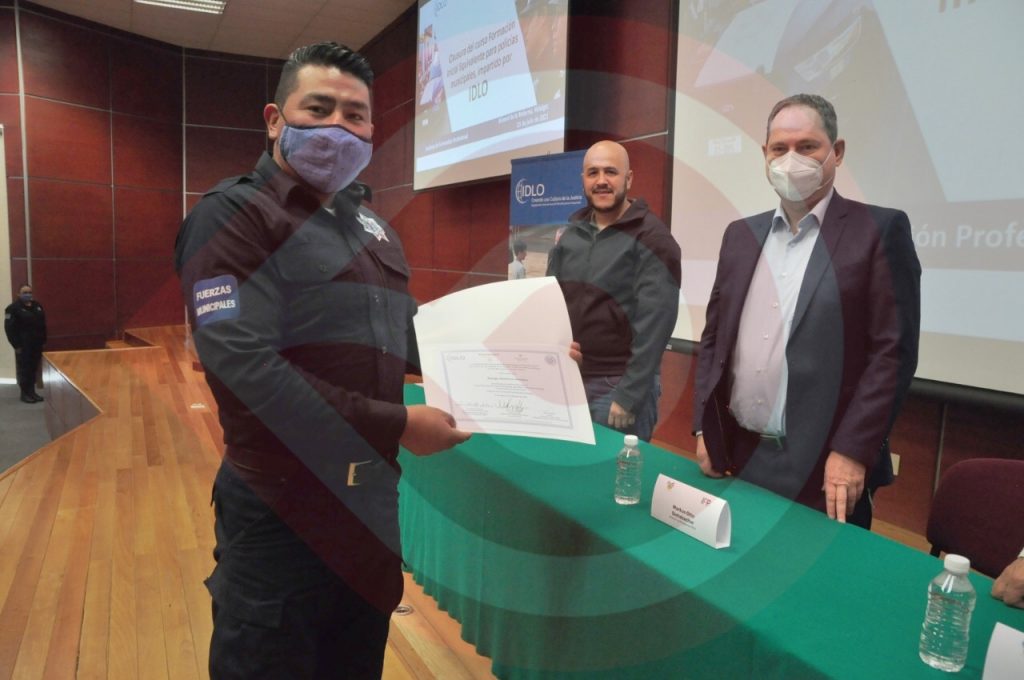 Durante el cierre de estas actividades académicas se contó con la asistencia de: Markus Otto Gottsbacher, director de Programas IDLO; Gabriela Valdés Olivares, Gerente de País de IDLO; David Issac Mendoza Torres, asociado de Programas Componente de Formación Inicial Equivalente; y Guillermo Alberto Hidalgo Montes, director general del Instituto de Formación Profesional de la Secretaría de Seguridad Pública de Hidalgo.