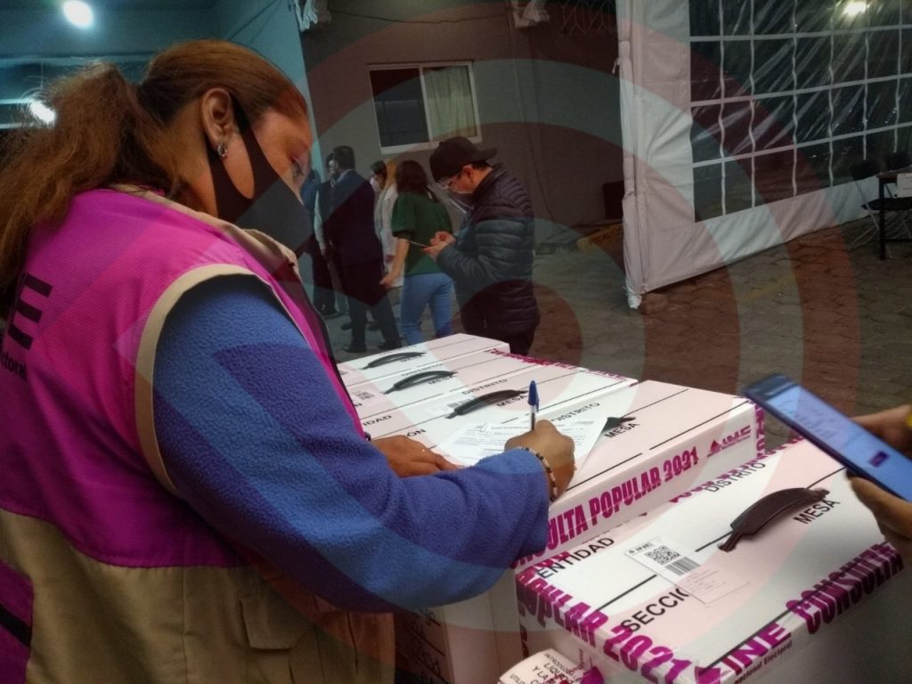 Pachuca, Hgo.- En Sesión extraordinaria de la Consulta Popular 2021, la Junta Local del Instituto Nacional Electoral en Hidalgo, anuncia cierre de las Mesas Receptoras tras 10 horas de participación ciudadana.