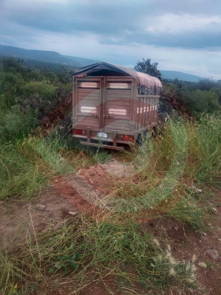 En los límites de Tlaxiaca y Ajacuba, en la carretera Pachuca-Tula, fueron detenidos quienes dijeron llamarse Á.O.C., de 30 años, y C.R.T., de 23; al ser interceptados a bordo de la unidad, descendieron y trataron de huir corriendo entre matorrales, pero fueron capturados.
