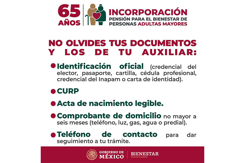 Una vez realizado el trámite, se entregará a la persona adulta mayor su Tarjeta para el Bienestar para el pago de su pensión, que este año aumentó a tres mil 100 pesos bimestrales.