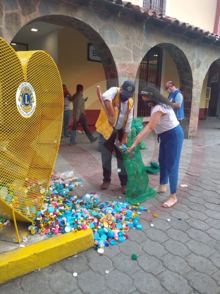 Recolecta Club de Leones 7 “arpillas” de tapitas del Corazón Contenedor