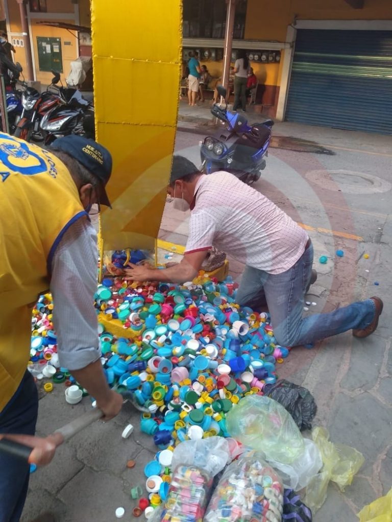 Huejutla, Hgo. – Un total de 7 “arpillas” de tapitas fueron recolectadas por integrantes del Club de Leones Huejutla Centenario durante las acciones de vaciado del corazón Contenedor que se tiene en el centro de esta ciudad de Huejutla.