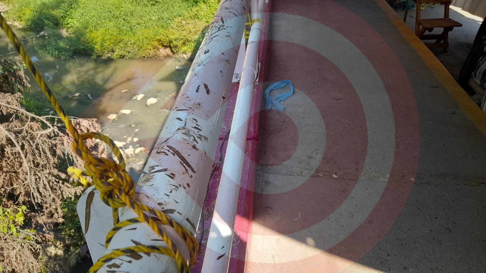 Huejutla, Hgo.- A escasos tres días de que personal adscrito al área de Balizamiento Municipal remozara el barandal del puente de la calle Sonora, de la colonia Juárez, comerciantes que se ubican en el sector ya dañaron la pintura al amarrar lazos en la estructura.
