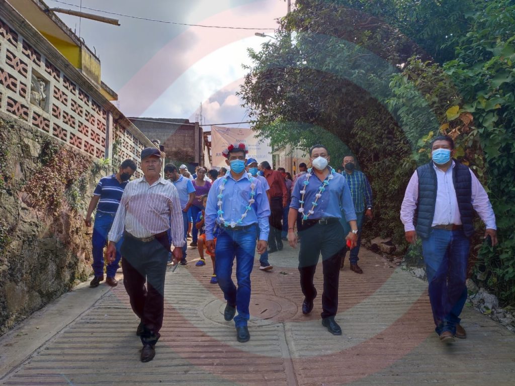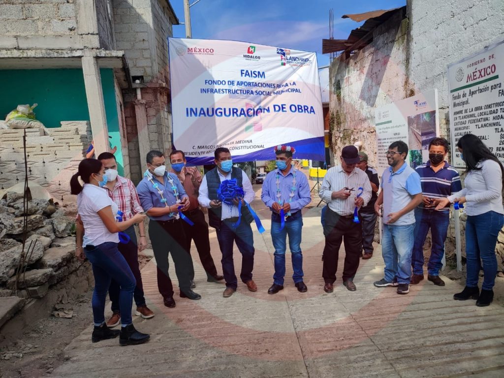 Tlanchinol, Hgo.- El presidente municipal de Tlanchinol Marcos Bautista Medina en coordinación con el área de Obras Públicas, tomando todas las medidas sanitarias correspondientes y con una afluencia de alrededor de 20 personas inauguró la construcción de 263.83 metros cuadrados de pavimentación de calles en Barrio Santa Cruz.