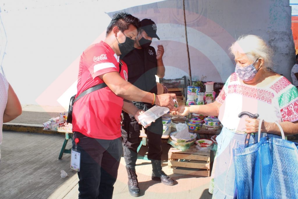 • Distribución gratuita de gel antibacterial y vigilancia de uso del cubrebocas, durante el tianguis.