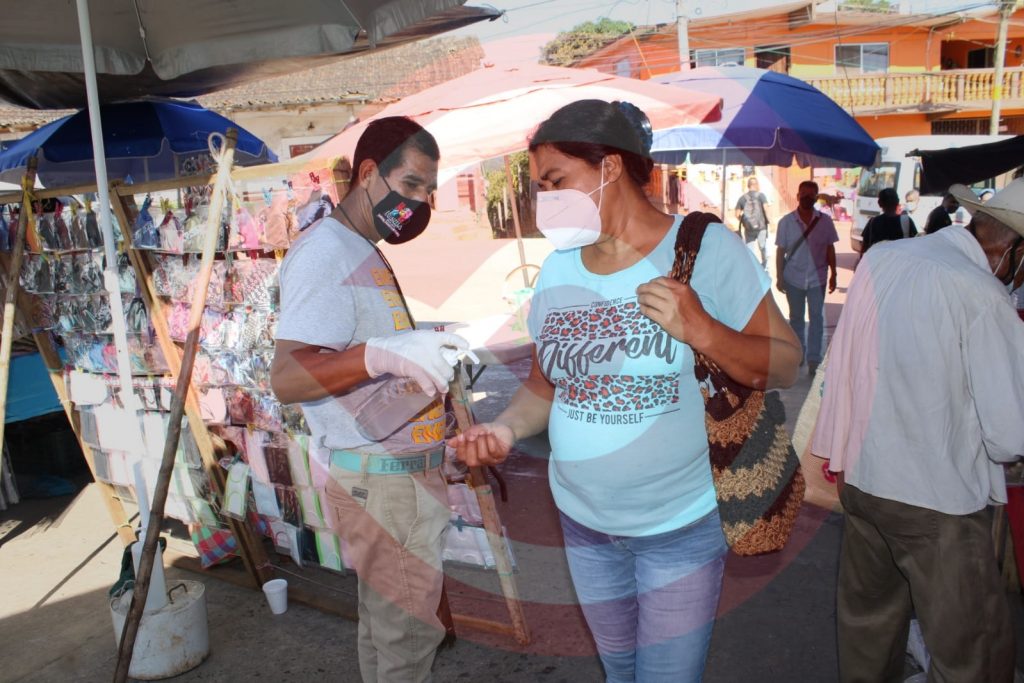 Huautla, Hgo.– Por instrucciones del presidente municipal Felipe Juárez Ramírez, personal de su administración instaló filtros sanitarios en los accesos al tianguis comercial, celebrado en las principales calles de la cabecera, donde se distribuyó gratuitamente gel antibacterial y se exigió a la ciudadanía en general el uso correcto del cubrebocas.