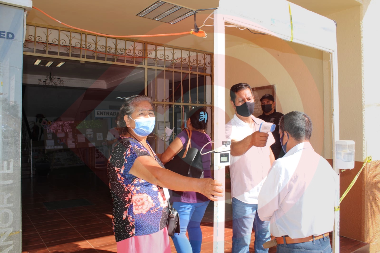 Huautla, Hgo.– Por instrucciones del presidente municipal Felipe Juárez Ramírez, personal de su administración instaló filtros sanitarios en los accesos al tianguis comercial, celebrado en las principales calles de la cabecera, donde se distribuyó gratuitamente gel antibacterial y se exigió a la ciudadanía en general el uso correcto del cubrebocas.