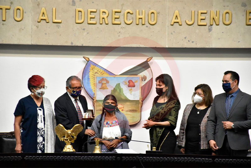 Pachuca de Soto, Hgo.- En representación del gobernador Omar Fayad, el secretario de Educación Pública de Hidalgo, Atilano Rodríguez Pérez, encabezó este miércoles la entrega de la “Presea Pedro María Anaya” en su edición 2021 a la Tejedora hidalguense Martina García Cruz, en sesión solemne celebrada en el Salón de Plenos del Congreso Libre y Soberano de Hidalgo.