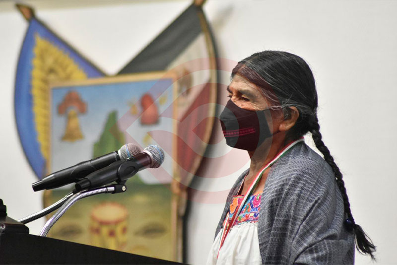 En su mensaje, la señora Martina, quien nació el 24 de febrero de 1941 en el Valle del Mezquital, agradeció la distinción y habló de su experiencia con el telar de cintura, el cual aprendió a tejer desde los 12 años gracias a su madre, lo que le ha servido como pasatiempo, medio de subsistencia y como forma de vida, y ha compartido su conocimiento a varias generaciones de la región.