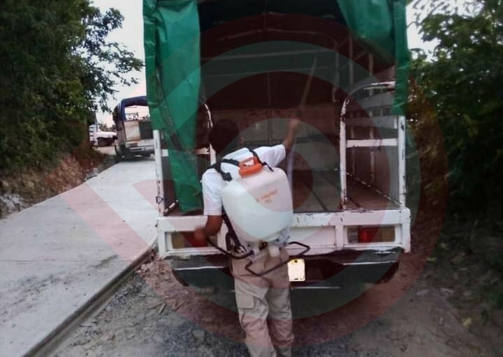Huazalingo, Hgo.- Fuerte y decidido trabaja el gobierno municipal que preside Julio César González García, para mitigar la pandemia, por eso y por instrucciones del edil las áreas de Protección civil así como Salud están acudiendo a las comunidades para realizar la desinfección de las delegaciones, transporte público, tiendas, iglesias y demás espacios.