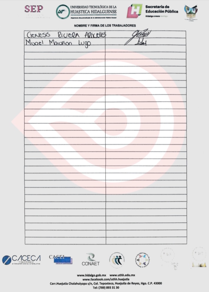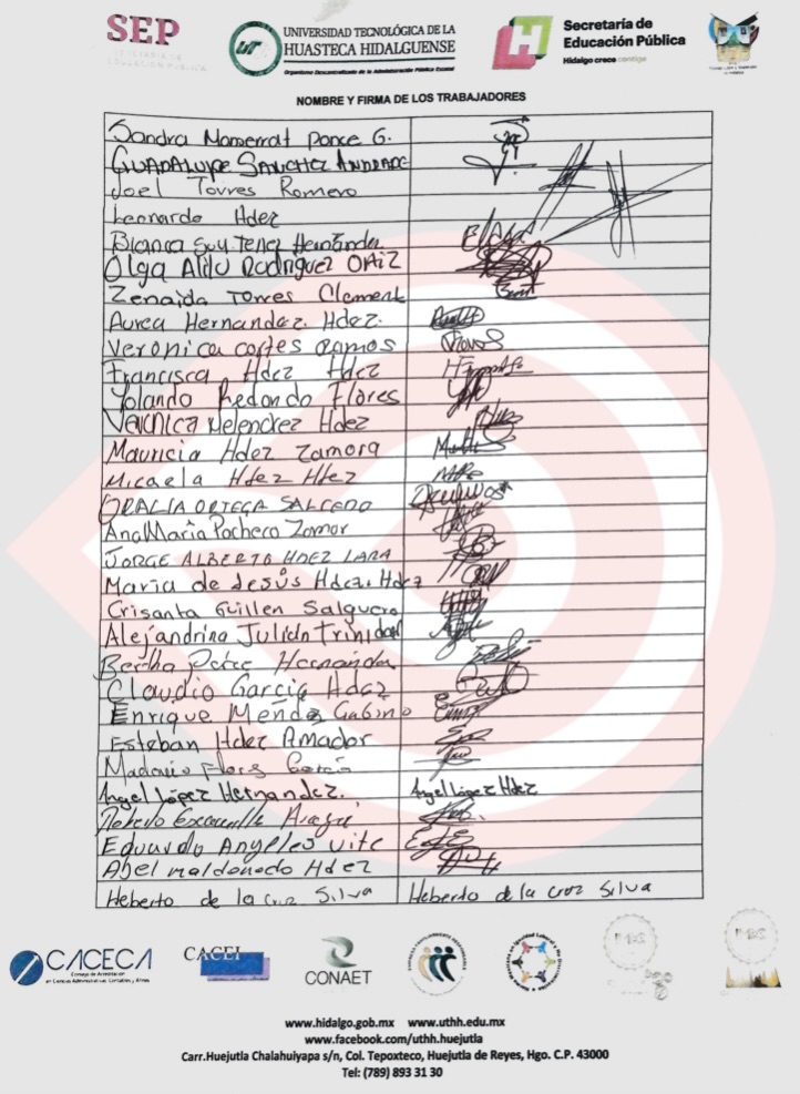 El documento es firmado por los trabajadores de la Universidad Tecnológica de la Huasteca Hidalguense y también es dirigido con copia para su conocimiento a Alejandro Enciso Arellano, Secretario particular del Gobernador.