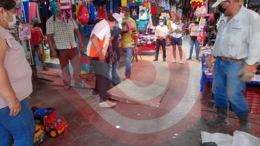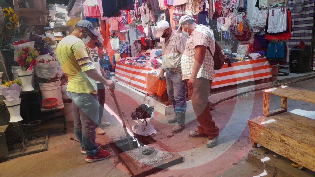 Limpian drenajes en el mercado municipal